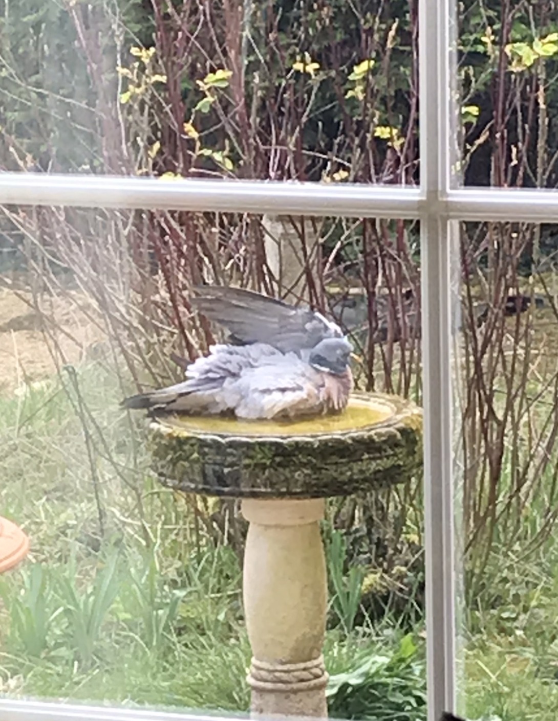 woodpigeon continues to come for his breakfast in the mornings, and has enjoyed